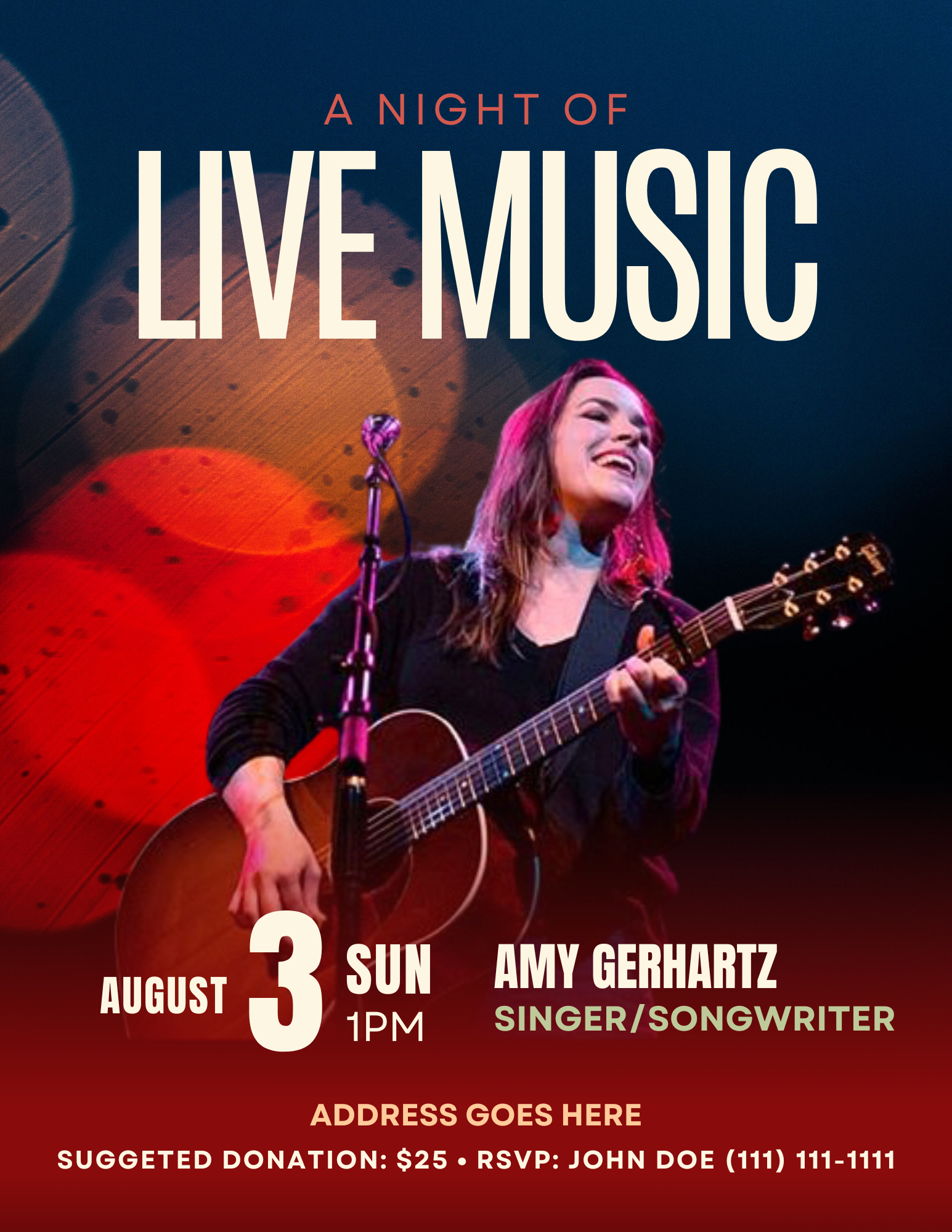 Her music blends soul, empowerment, and storytelling—helping listeners connect to their own strength through honest lyrics and powerful melodies. She’s lent her voice to commercial and television projects for networks like Lifetime TV and E!, and has been nominated for honors including the NSAI Song Contest and Best Pop Album at the Independent Music Awards. Amy is also a 6-time featured performer on The Rock Boat music festival at sea.
